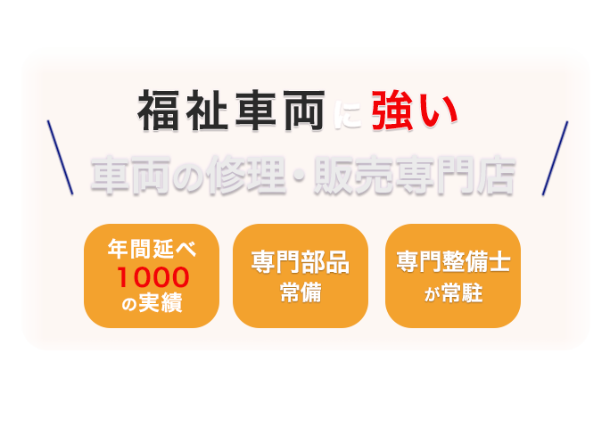 中でも福祉車両の販売・修理・メンテナンスには自信を持っており、福祉車両だけで年間延べ1000台近くの実績があります!